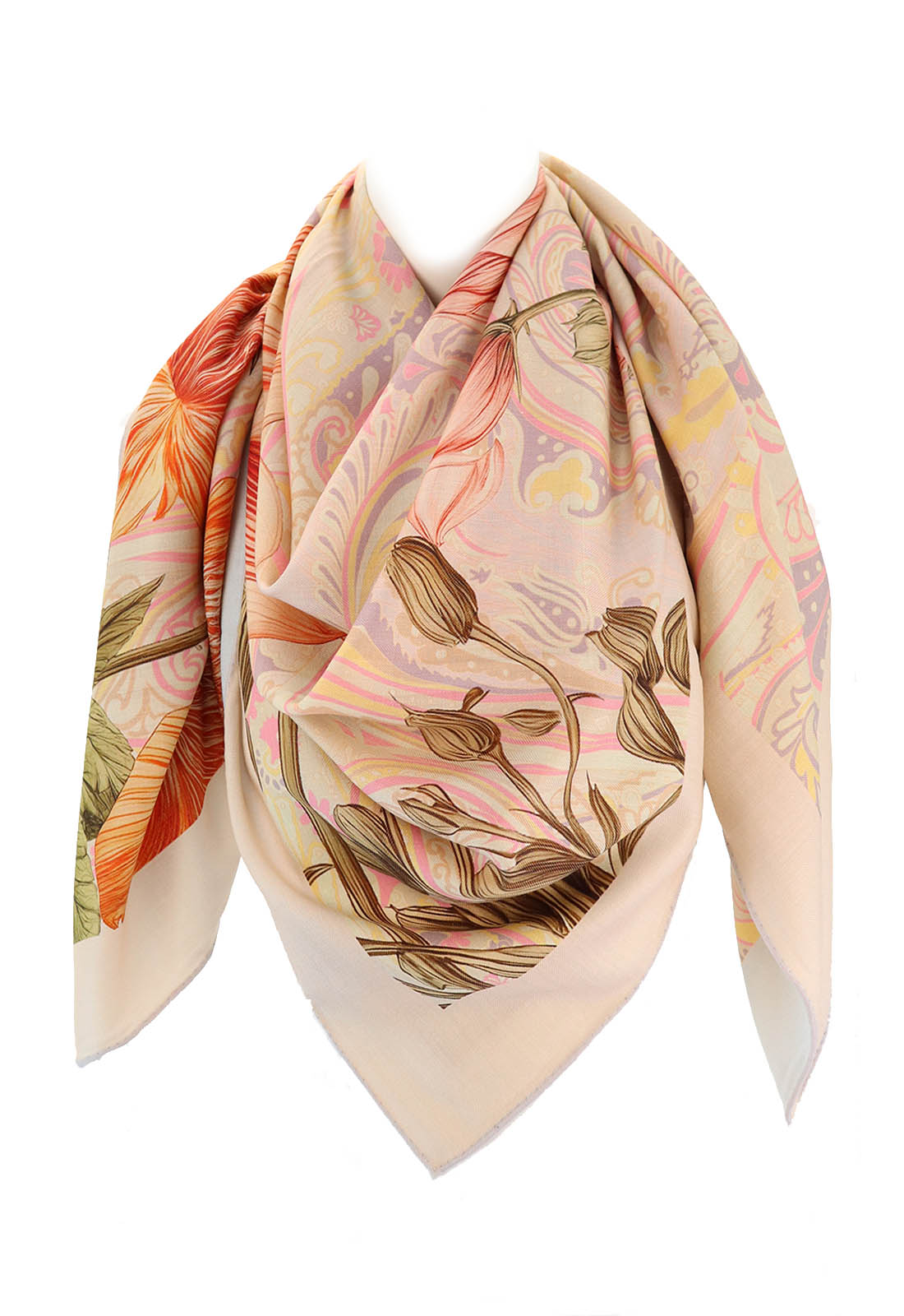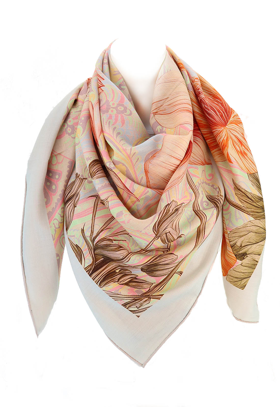 FORLANI 80% Wolle 20% Seide. Weltneuheit! Zweiseitig, in unterschiedlichen Farben bedruckt. Einzigartiges Produkt ca. 130x130 cm, Kanten handgerollt.